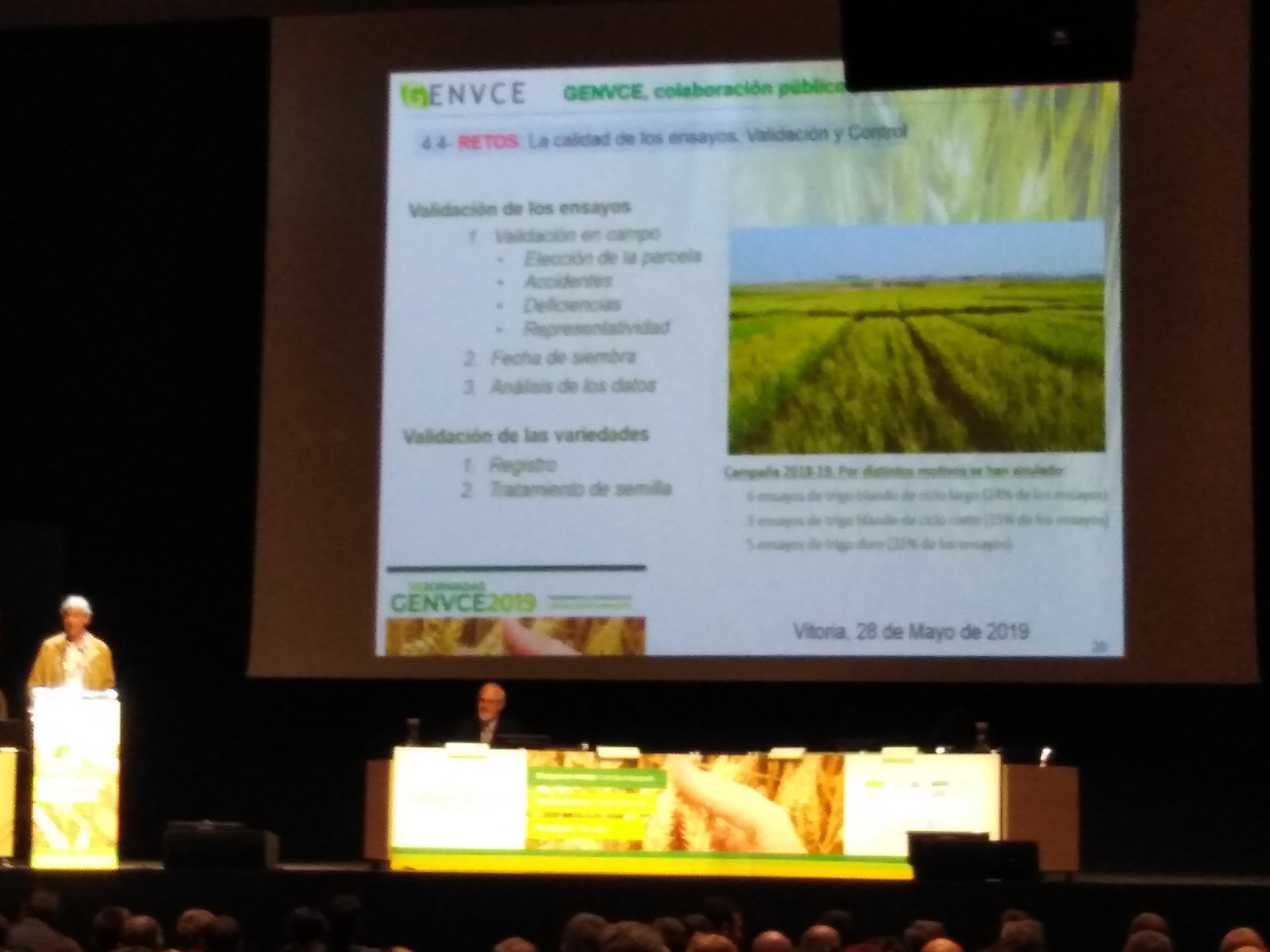 A continuación, Alberto Lafarga (INTIA) explicó lo que es GENVCE (Grupo para la Evaluación de Nuevas Variedades de Cultivos Extensivos en España) y los organismos que lo integran: técnicos responsables de la realización de los ensayos de las redes de las Comunidades Autónomas, de la Oficina Española de Variedades Vegetales (OEVV), del Instituto Nacional de Investigación y Tecnología Agraria y Alimentaria (INIA) y de empresas del sector privado.