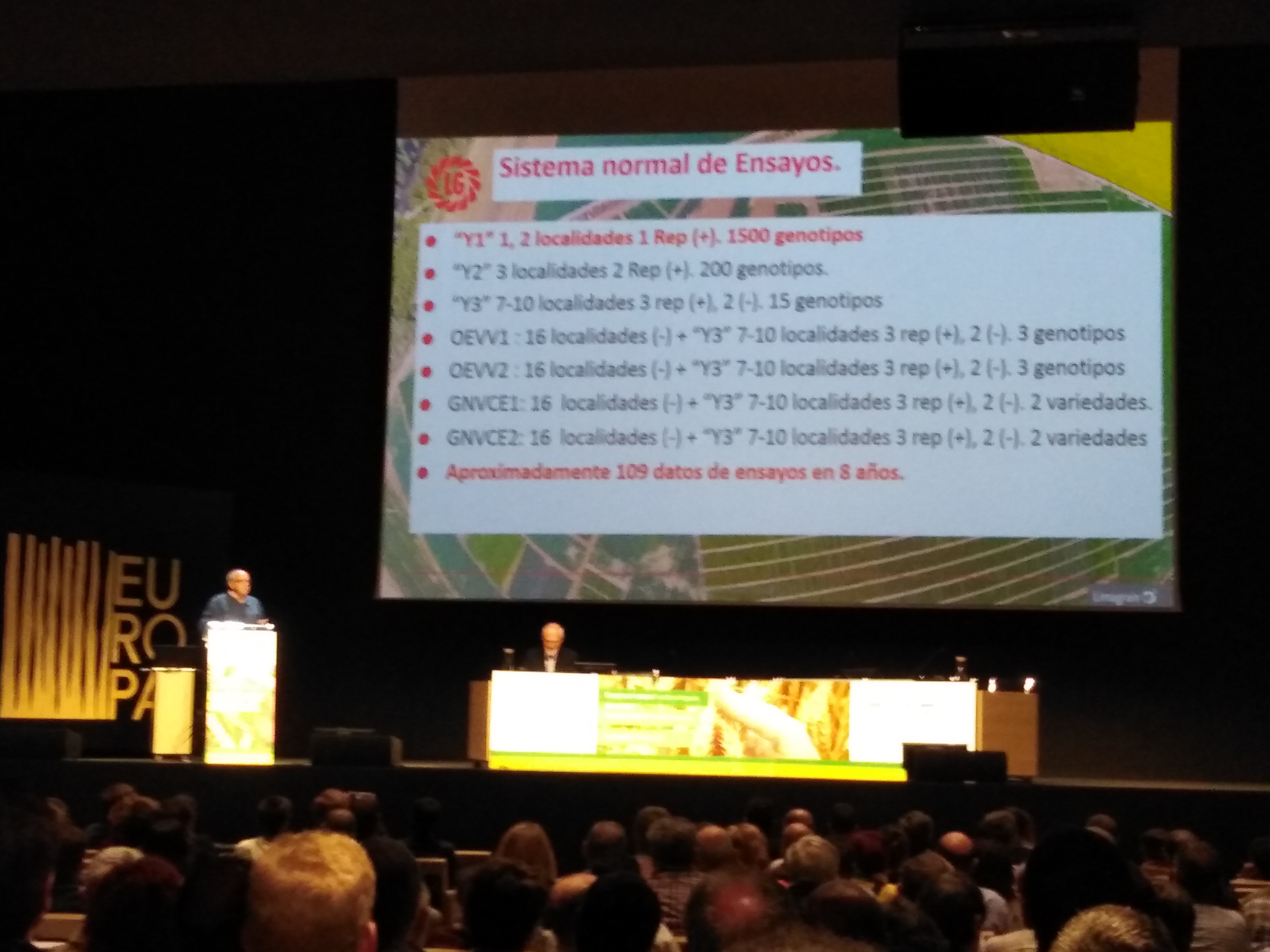 Para mejorar la precisión de la estimación de un carácter cuantitativo existen las redes y ejecución de ensayos donde no sólo se debe elegir las localidades representativas del mercado; sino diseñar los propios ensayos (elección de parcela, maquinaria de siembra y cosecha, corrección de desigualdades, etc.…). Se debe ser consciente de que los recursos son limitados y se debería “dar el paso” hacia una selección genómica, mejorando las redes de ensayo haciéndolas más eficientes a través de la reducción del número de ensayos en las primeras fases sustituyéndolos por la “predicción” de la selección genómica. Además, se debería calibrar y recalibrar el sistema cada año comprobando resultados. También destacó la importancia del pago de “royalties” para financiar la investigación de los programas de mejora y el papel de la protección frente a la patente. Una variedad protegida está disponible como recurso fitogenético para todos los mejoradores; mientras que una variedad patentada no está disponible como recurso genético para todos los mejoradores.