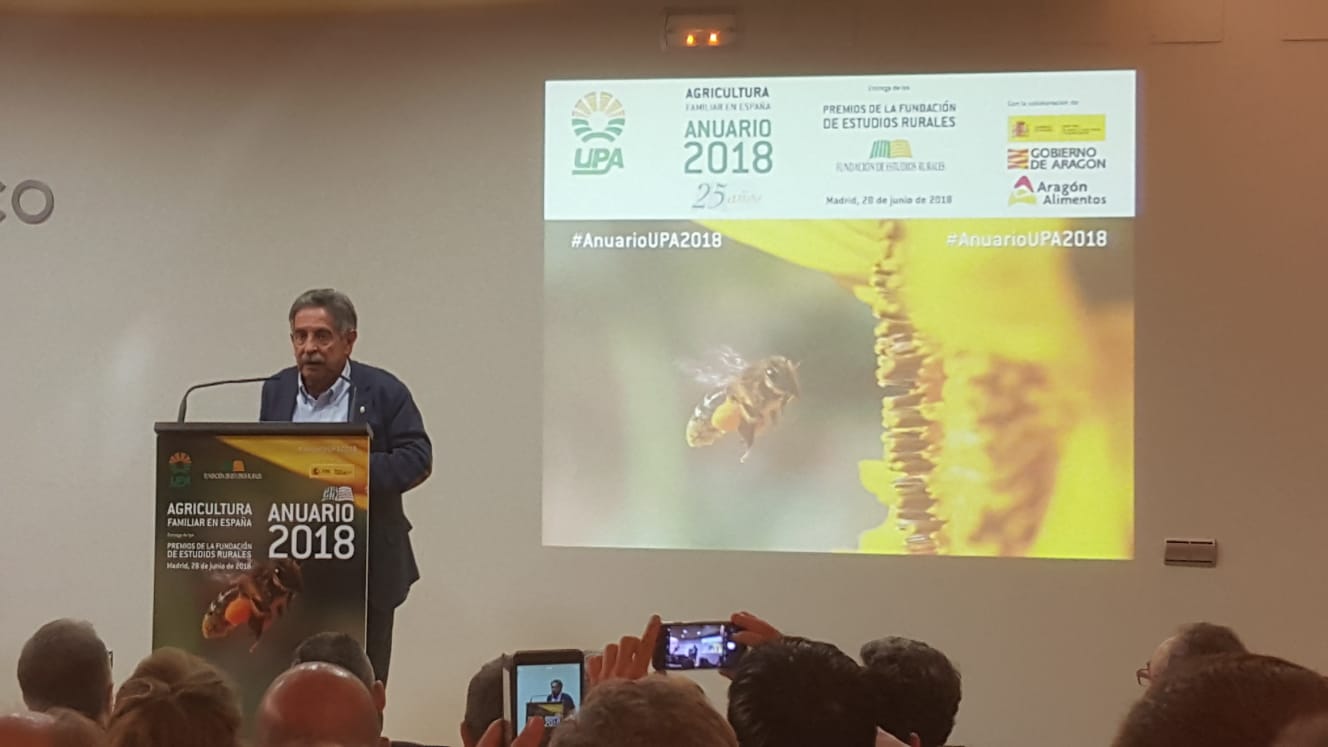 Marcos Alarcón, Secretario de Organización de UPA, fue el encargado de presentar el anuario resaltando el trabajo a lo largo de sus 25 años de todos los miembros implicados en su elaboración y resaltando especialmente el de la Comunidad Autónoma de Aragón.